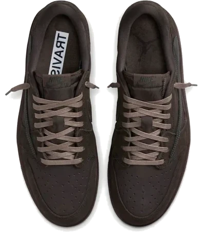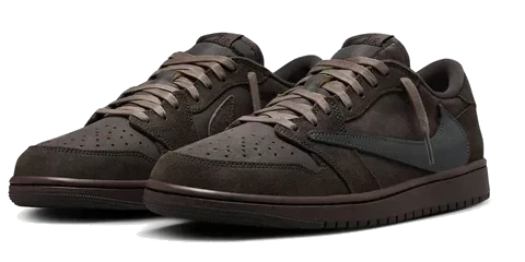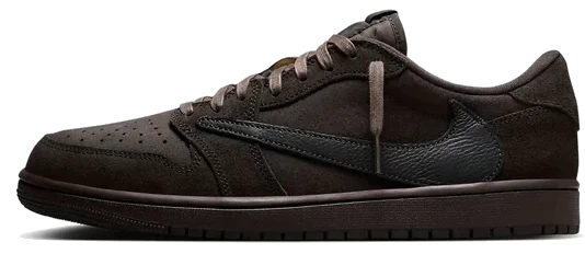 £56 The Travis Scott x Air Jordan 1 Low "Velvet Brown" is a limited-edition collaboration featuring a premium suede construction and a distinctive Dark Mocha and Black color scheme.
